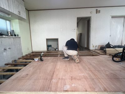 こんにちは!今回もまた依頼の多い床張替えの施工を